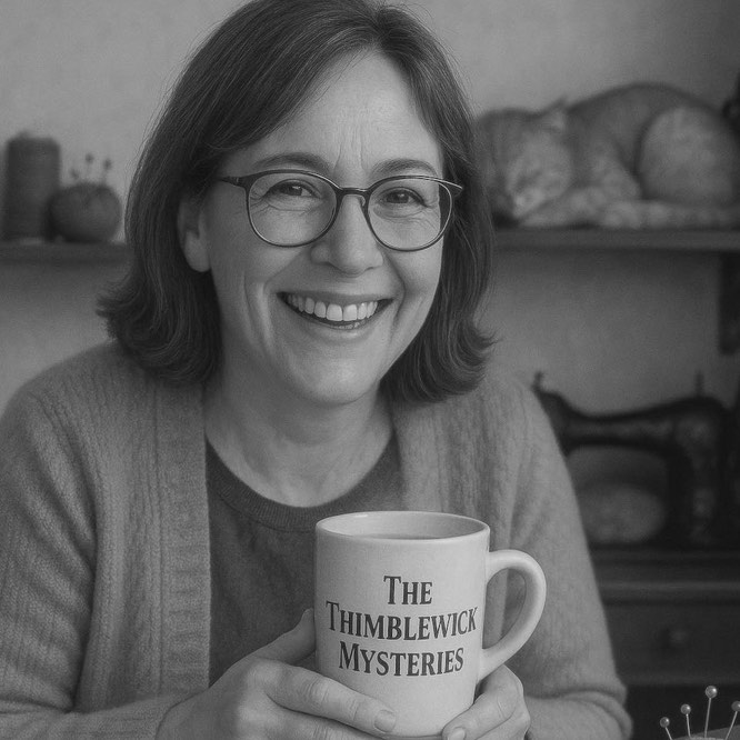 Now in her sixties, Poppy delights in combining her love of sewing with her fondness for a good mystery. The result is The Thimblewick Mysteries — a series of cosy crime novels full of wit, warmth, and the occasional stray thread.