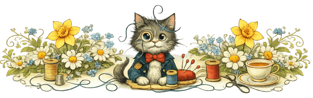 When she’s not writing about Auntie Needle, Cousin Zig Zag, and Sir Whiskers the shop cat, Poppy can usually be found unpicking a crooked seam, brewing a strong cup of tea, or wondering how on earth she ended up live-streaming to the internet.